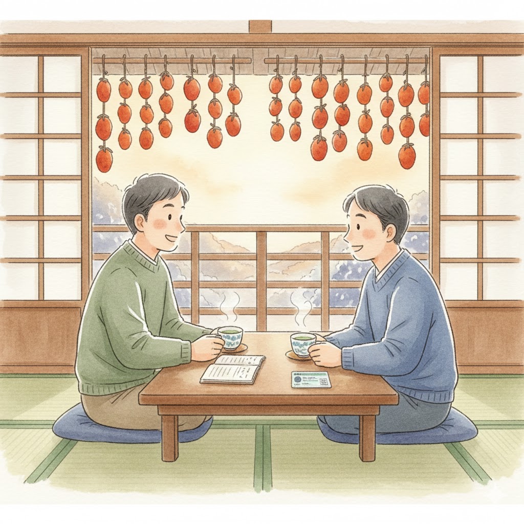 干し柿は、吊るしたその日に甘くなるわけじゃありません。
