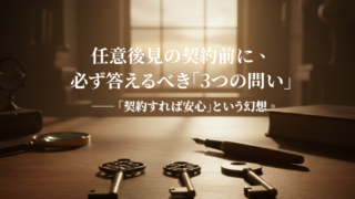 任意後見の契約を結ぶ前に自問自答すべき3つの問いを解説。誰が申し立てるのか、家族信託との権限衝突、後見監督人による監視の現実など、現場を知るプロの視点で「動く契約」にするためのポイントを整理します。