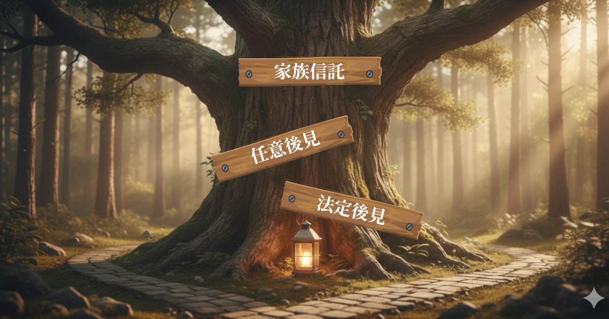 家族信託、任意後見、法定後見。